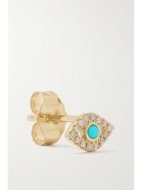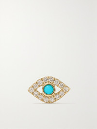 Small Evil Eye 14-karat gold, diamond and turquoise single earring Turquoise