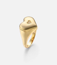 Made from 14kt gold, Sydney Evan's whimsical designs present a playful take on fine jewelry. Designed as a locket, this heart-shaped ring boasts a wallpaper-inspired motif and is adorned with dainty round diamonds in a pave setting. Product Details - Material: 14kt yellow gold - Made in Thailand - Item color: gold - Stone I: 3 diamonds, round-cut, pave setting, SI2 clarity grade, 0.026ctw - Item number: P01121915 Size & Fit - Min. width 3mm-0.1" - Max. width 14mm-0.55"