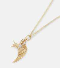 Wing and Starburst 14kt gold necklace with diamonds