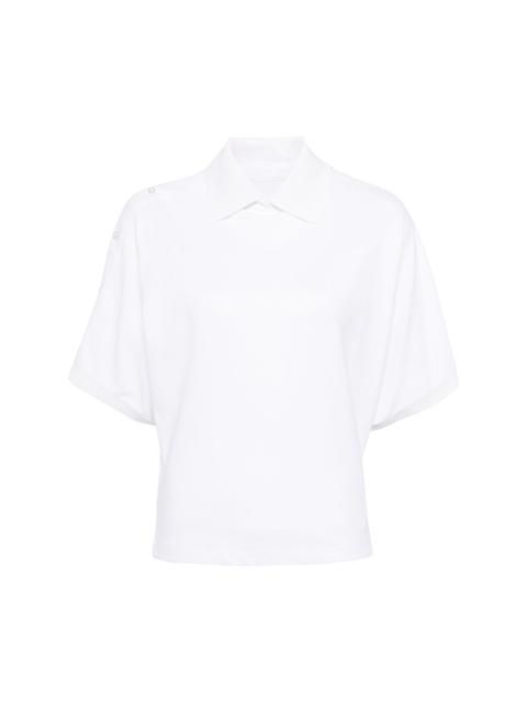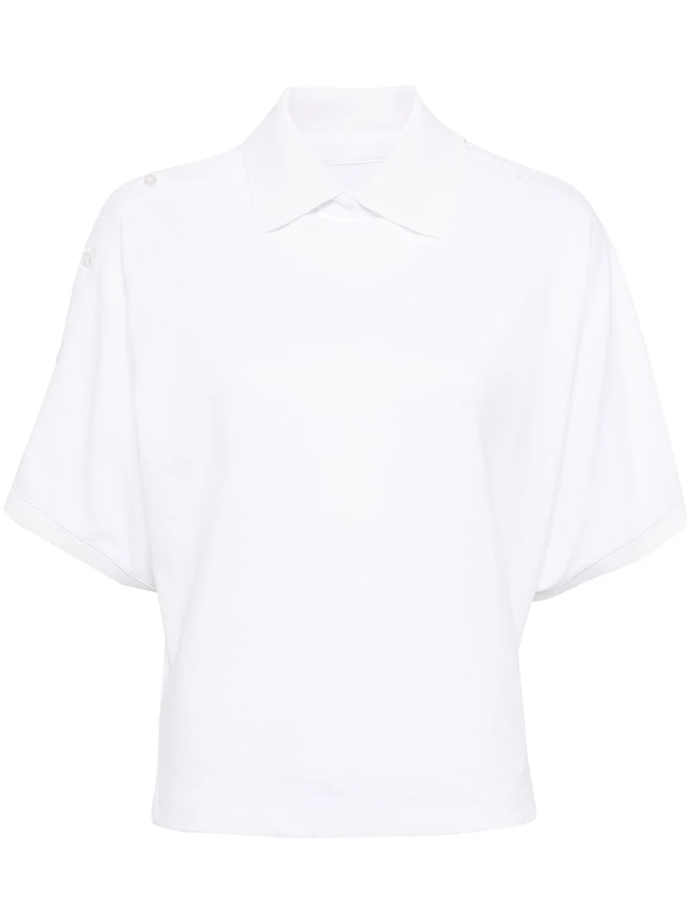 asymmetric cotton polo shirt Highlights - Off-white - Cotton - Pique weave - Asymmetric design - Deconstructed design - Polo collar - Button fastening at the shoulder - Short sleeves - Straight hem Imported Composition Cotton 100%