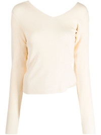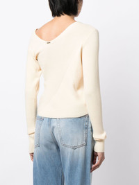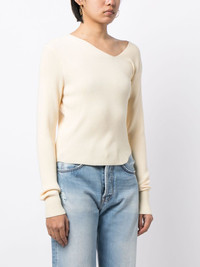 asymmetric-design ribbed-knit jumper Highlights - Cream white - Knitted construction - Ribbed knit - Asymmetric design and neck - Long sleeves - Straight hem Imported Composition Wool 30%, Polyester 30%, Nylon 20%, Rayon 20% SIZE & FIT Model measurements Height 5 ft 10 in(1.77 m) Bust/Chest 31.49 in(80 cm) Hips 35.43 in(90 cm) Waist 25.19 in(64 cm) FittingInformation Designed for a slim fit that sits just away from the body offering a close yet comfortable fit Made with a midweight knit, this piece offers some stretch This piece fits true to size – take your usual size Washing instructions Dry Clean Only