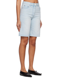 Non-stretch denim shorts. Fading throughout. · Belt loops · Five-pocket styling · Zip-fly · Logo patch at back waistband Supplier color: Light blue Body: 100% cotton. Trim: 80% polyester, 20% cotton. Made in South Korea 231494F088009