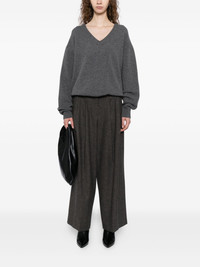 Classcic trousers Highlights - Charcoal grey - Front button and zip fastening - Two side slash pockets - Two rear welt pockets - Belt loops Imported Composition Wool 94%, Cashmere 6% SIZE & FIT Model measurements Height 5 ft 10 in(1.79 m) Bust/Chest 29.52 in(75 cm) Hips 35.03 in(89 cm) Waist 24.01 in(61 cm) FittingInformation Designed with a wide-leg cut, these trousers allow for a close fit at the waist and offer a loose and roomy fit over the leg Made from a midweight non-stretch fabric Washing instructions Dry Clean Only