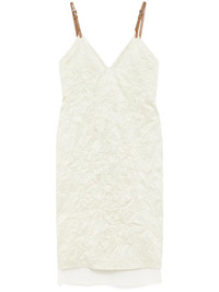 crinkled dress Highlights - Pastel green - Concealed rear zip fastening - V-neck - Adjustable shoulder straps - Rear slit Imported Composition Polyester 100% SIZE & FIT Model measurements Height 5 ft 9 in(1.76 m) Bust/Chest 31.1 in(79 cm) Hips 35.03 in(89 cm) Waist 24.4 in(62 cm) FittingInformation Designed for a slim fit that sits just away from the body offering a close yet comfortable fit The adjustable shoulder straps allow for a preferred fit when worn Made from a midweight non-stretch fabric