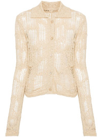 distressed open-knit cardigan Highlights - Light brown - Cotton blend - Open knit - Distressed effect - Spread collar - Front button placket - Long sleeves - Straight hem Imported Composition Cotton 86%, Nylon 14%