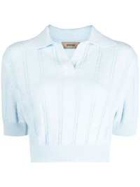 knitted cropped top Highlights - Light blue - Cotton - Knitted construction - Spread collar - Short sleeves - Cropped Imported Composition Body: Cotton 100% SIZE & FIT Model measurements Height 5 ft 11 in(1.8 m) Bust/Chest 28.34 in(72 cm) Hips 35.43 in(90 cm) Waist 23.62 in(60 cm) Washing instructions Dry Clean Only