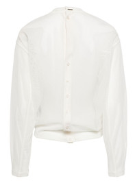 semi-sheer jersey top Highlights - Off-white - Jersey texture - Semi-sheer construction - Crew neck - Rear button fastening - Long sleeves - Straight hem Imported Composition Polyester 100%