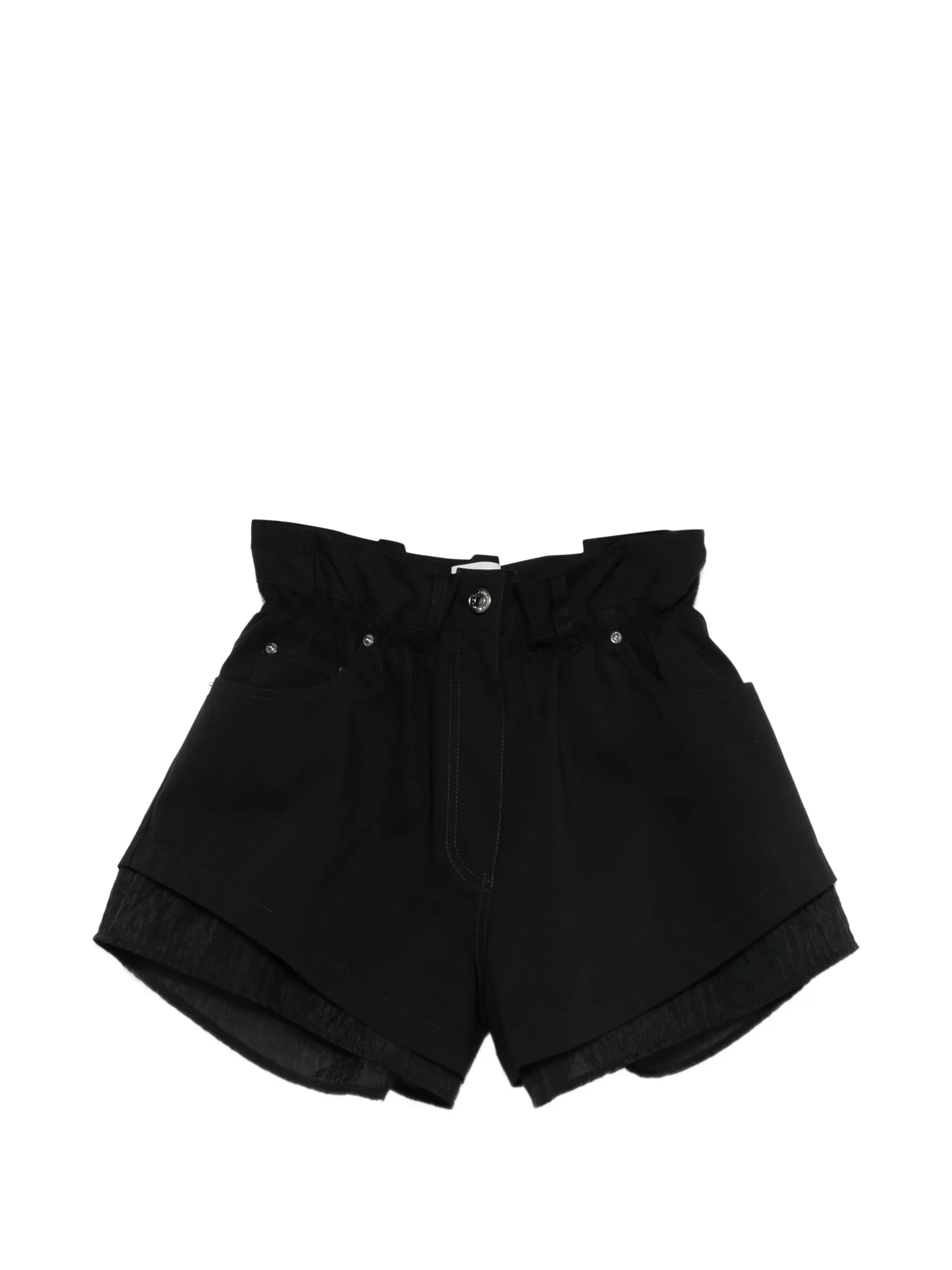 black shirred waistband pocket detail layered design belt loops rear welt pockets - Color: BLACK - Made in: Korea, Republic of - Designer Style ID: SY2G1WPCT10W BLACK Composition and care Cotton: 64.0%, Nylon: 31.0%, Polyester: 100.0%, Polyurethane: 5.0%