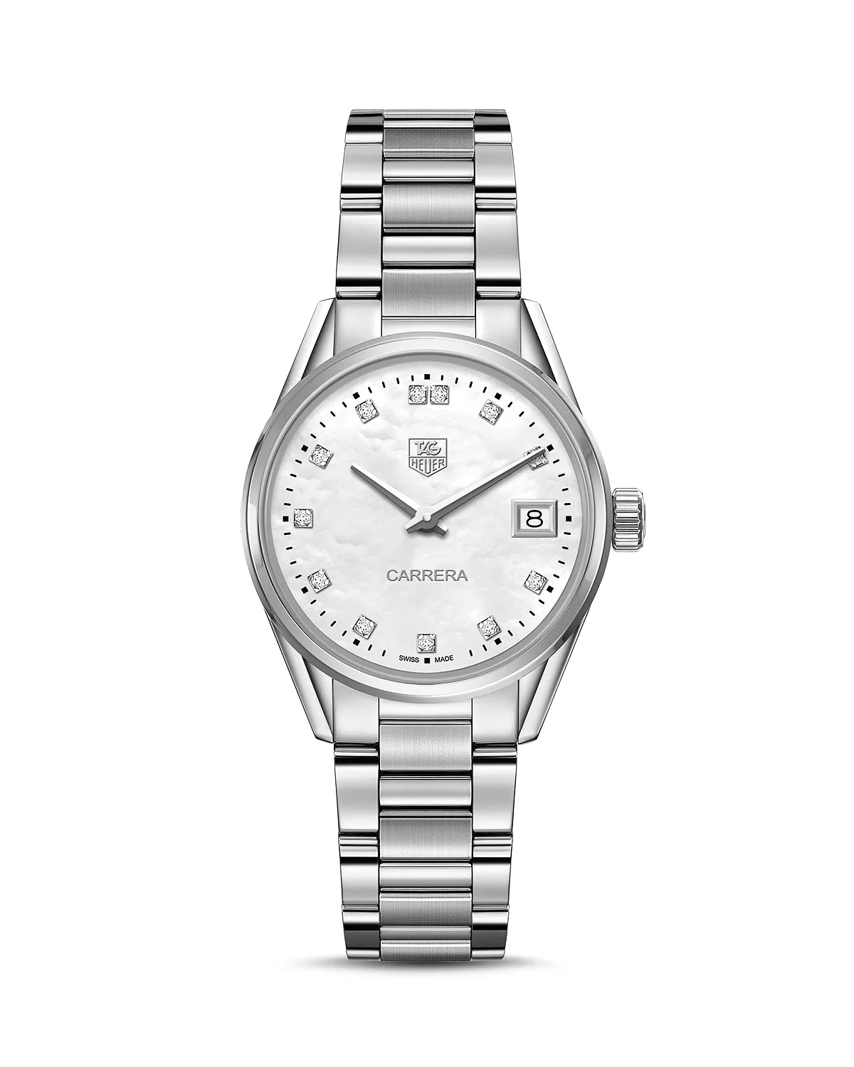 Carrera Stainless Steel and White Mother of Pearl Diamond Dial Watch, 32mm