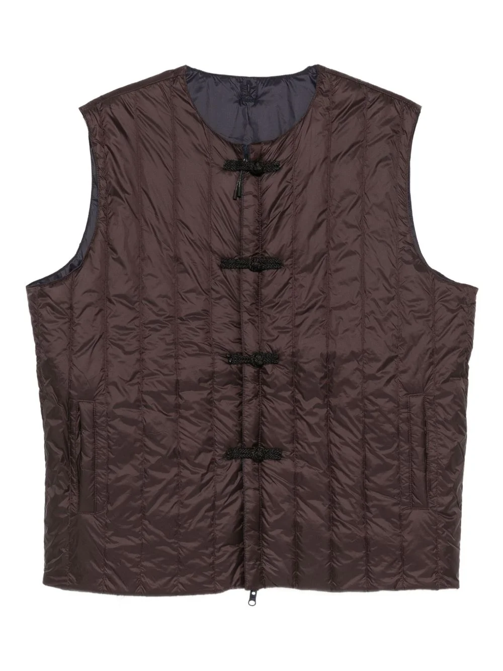 quilted gilet Highlights - Dark chocolate - Quilted - Sleeveless - Round neck - Two pockets Imported Composition Outer: Nylon 100% Lining: Nylon 100%, Down 95%, Feather 5% SIZE & FIT Model measurements Height 5 ft 9 in(1.76 m) Bust/Chest 31.88 in(81 cm) Hips 35.43 in(90 cm) Waist 24.8 in(63 cm) Washing instructions Read Manufacturer Guidelines