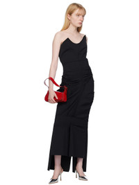 Stretch virgin wool delaine dress. Raw edges, exposed seams, and draping throughout. · Paneled construction · Modified sweetheart neck · Vent at front and back hem · Vented side seams · Zip closure at back · Integrated boning at interior bodice Supplier color: Black Body 1: 96% virgin wool, 4% elastane. Body 2: 100% viscose. Made in Italy 241258F055002