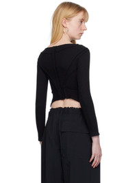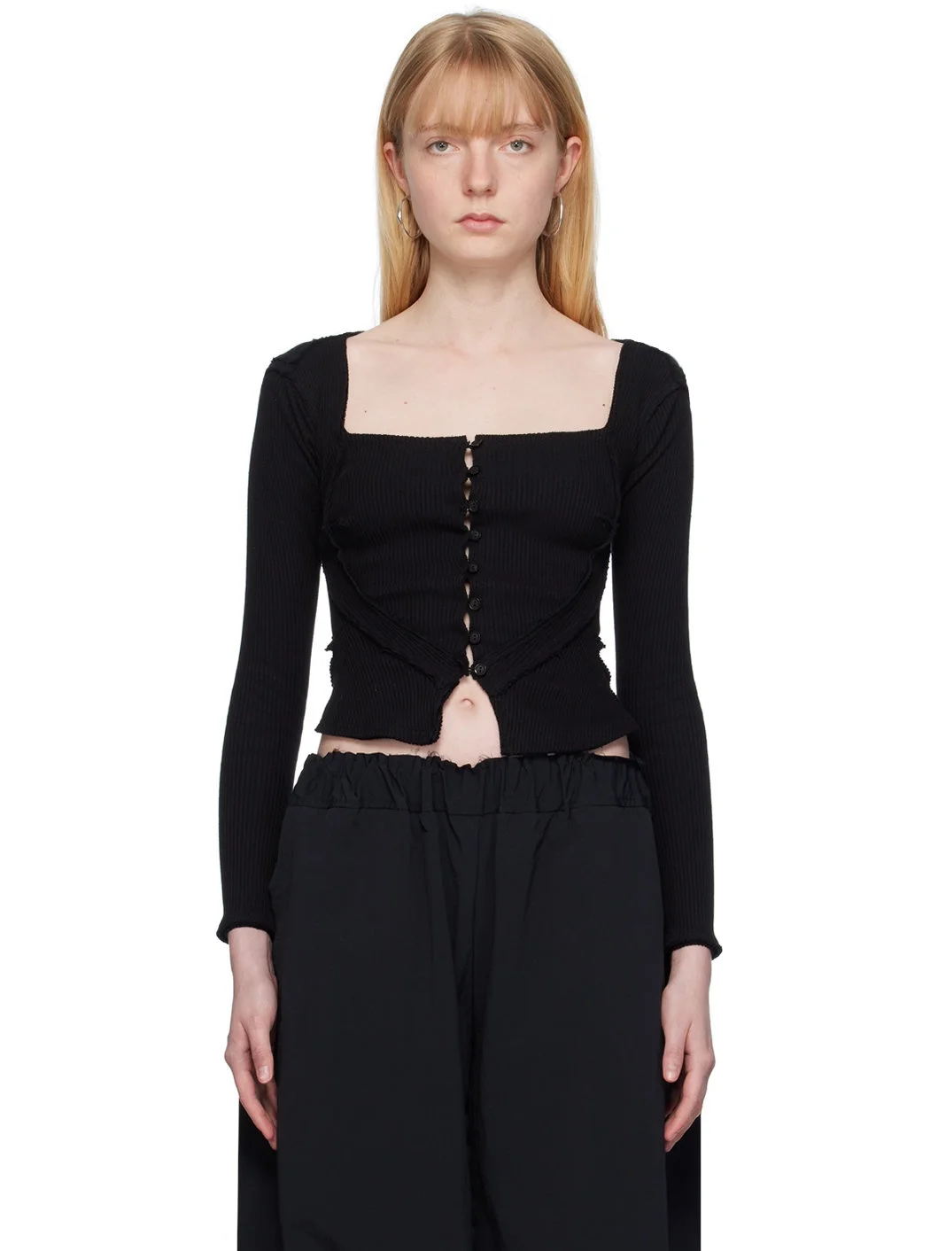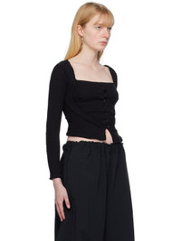 Stretch cotton drill blouse. Raw edges and exposed seams throughout. · Paneled construction · Square neck · Button closure · Cutout at front asymmetric hem Supplier color: Black 96% cotton, 4% lycra. Made in Italy 241258F107002