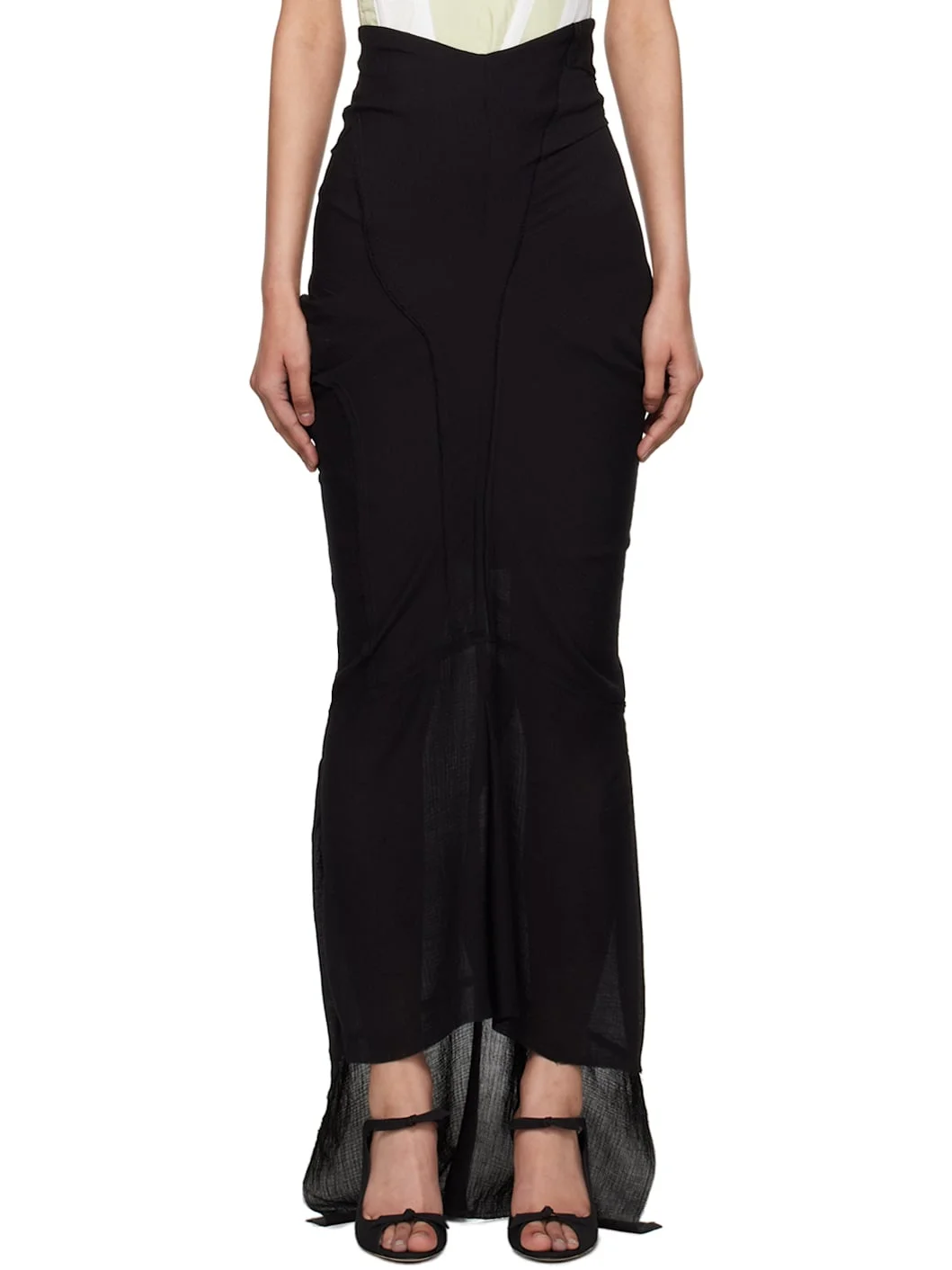 Viscose gauze skirt. Raw edges and draping throughout. · Paneled construction · Pleats at asymmetric hem · Concealed zip closure at back Supplier color: Black 100% viscose. Made in Italy 241258F093003