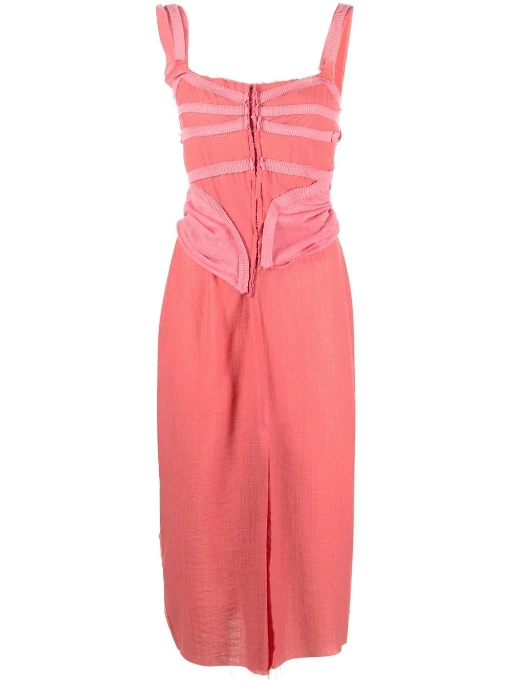 tape-detail sleeveless midi dress deep pink cotton tape detailing rear slit front hook and eye fastening V-neck sleeveless fitted waistline mid-length straight hem Made in Italy Composition Cotton 100%, Viscose 85%, Polyamide 15% SIZE & FIT Model measurements Height 5 ft 10 in(1.78 m) Bust/Chest 29.92 in(76 cm) Hips 34.64 in(88 cm) Waist 23.62 in(60 cm) Washing instructions Machine Wash