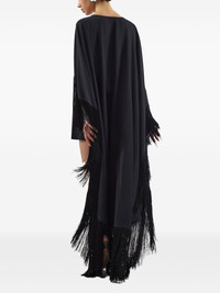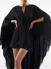 1970 dress Highlights - Black - Front tie fastening - Cape design - Long sleeves - Fringe detailing Made in Italy Composition Acetate 78%, Viscose 22%