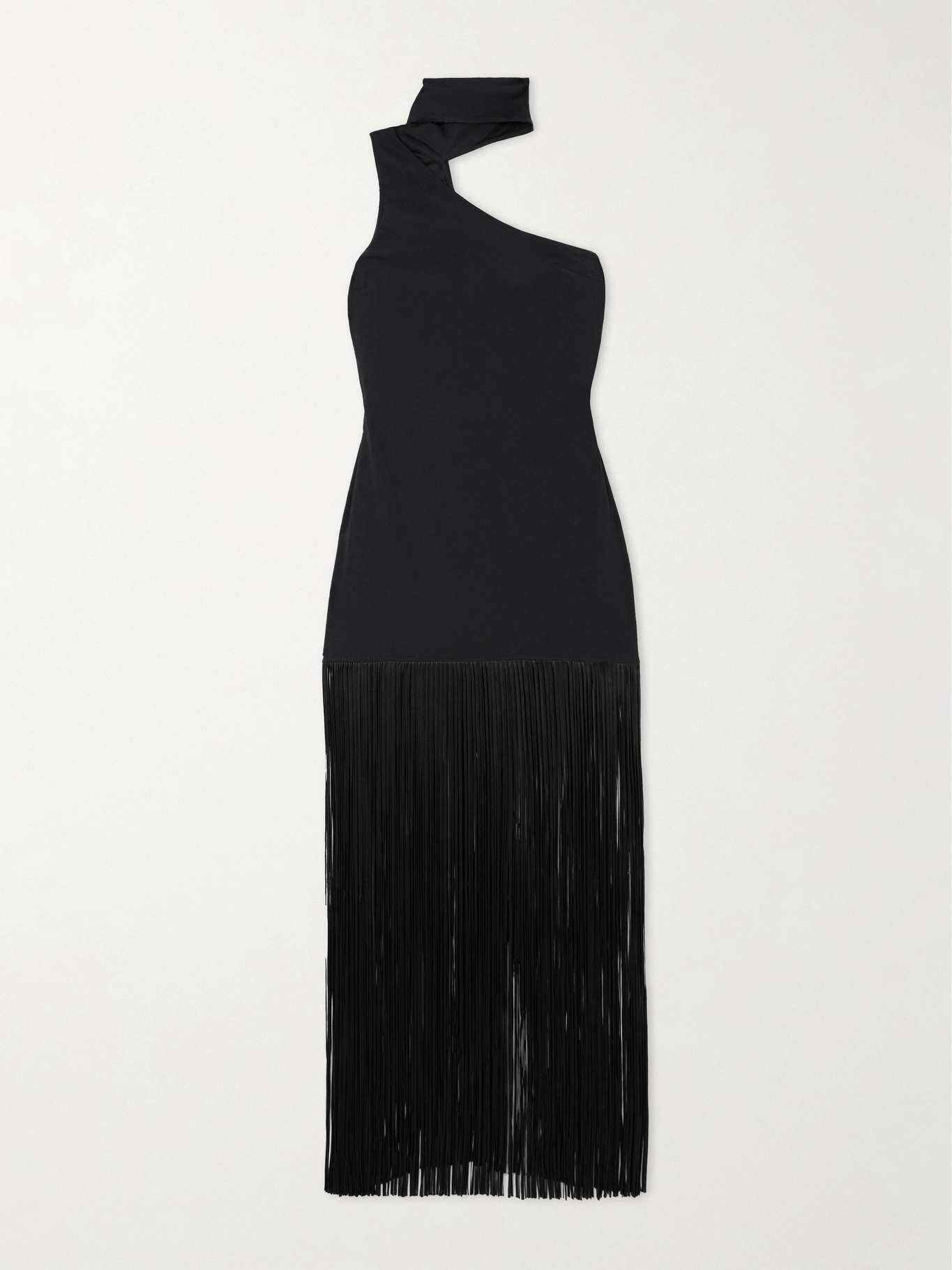 Atlanta asymmetric one-shoulder fringed crepe gown