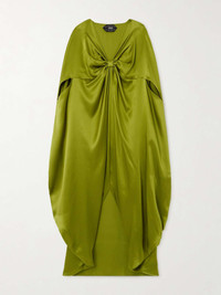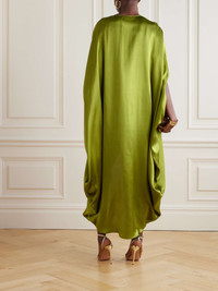 EDITORS'NOTES Taller Marmo's 'Azores' kaftan strikes the perfect balance between soft and sculptural. It's made from lustrous silk-satin that's twisted at the bodice to drape elegantly over your frame in a cocoon-inspired shape. Gold accessories will complement the rich 'Agave' shade. SIZE & FIT Product measurements: - Comfortably fits those who are between a size XSmall-Small - Length: 140cm / 55.1in DETAILS & CARE - Green silk-satin - Slips on - 100% silk - Dry clean - Designer color: Agave
