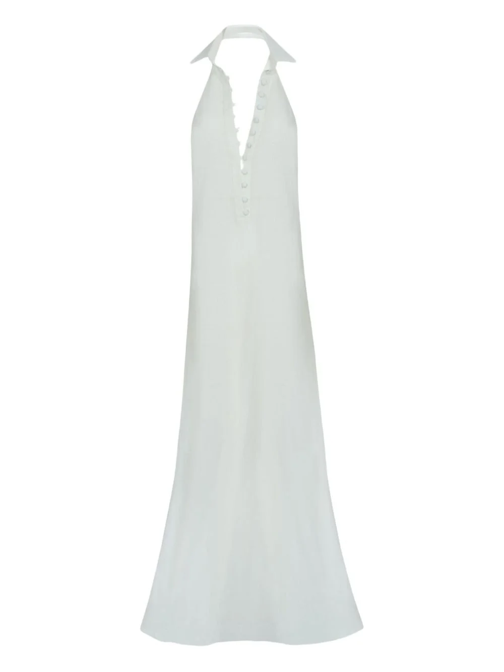 Barbara dress Highlights - Off-white - Halterneck - Button front - Open back - Sleeveless - Maxi length Made in Italy Composition Linen/Flax 100% Washing instructions Dry Clean Only