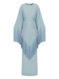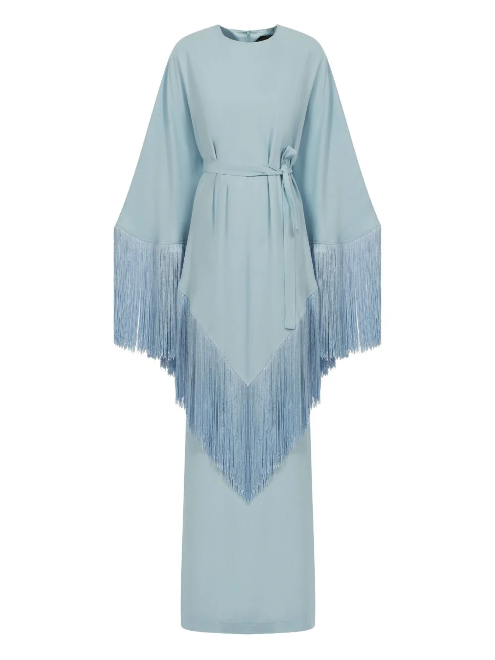 Bohemian dress Highlights - Baby blue - Rear zip fastening - Fringe detailing - Round neck - Long sleeves Made in Italy Composition Acetate 74%, Viscose 22%, Elastane 4%