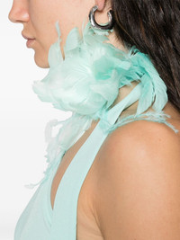 Bolkan maxi dress Highlights - Aqua green - One-shoulder - Side slit - Scarf detailing - Feather detailing Made in Italy Composition Ostrich Feather 100%, Acetate 78%, Viscose 22% SIZE & FIT Model measurements Height 5 ft 9 in(1.75 m) Bust/Chest 32.67 in(83 cm) Hips 36.22 in(92 cm) Waist 24.8 in(63 cm) FittingInformation Designed to be unstructured, offering a loose fit throughout Made from a midweight non-stretch fabric
