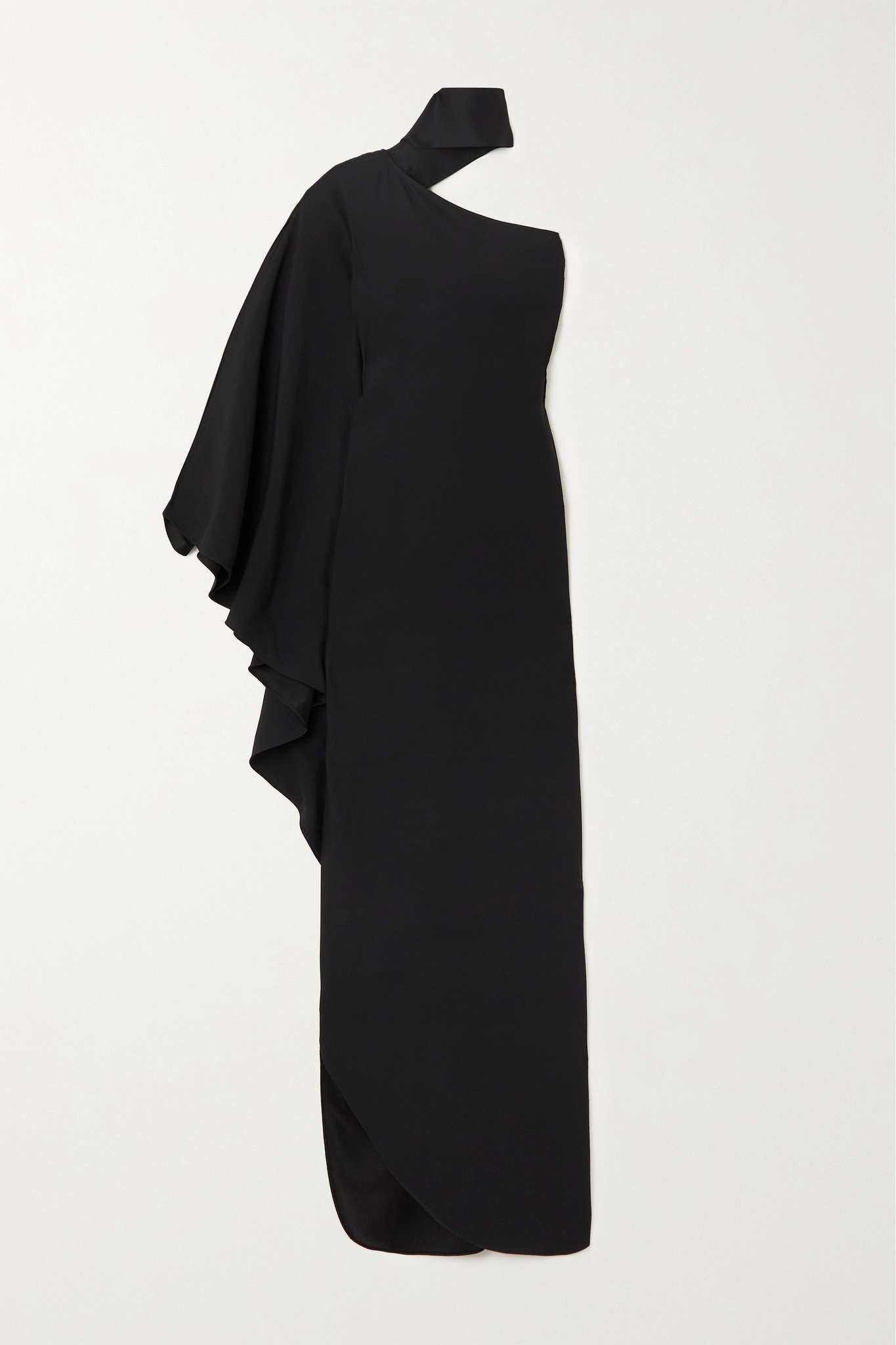 Bolkan scarf-detailed one-shoulder ruffled crepe gown