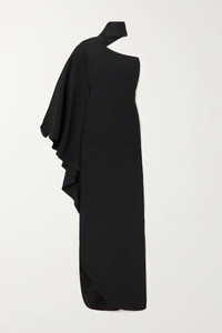 EDITORS'NOTES Taller Marmo's pieces are inspired by glamorous styles from the '60s and '70s. Cut from black crepe, this 'Bolkan' gown has a one-shoulder neckline detailed with a languid scarf. The ruffled side and generous split will make your every move a photo opportunity. SIZE & FIT - Fits true to size, take your normal size - Designed for a draped silhouette, cut to be worn very loose - Mid-weight, fluid, non-stretchy fabric - Model is 180cm/ 5’11” and is wearing an IT 40 DETAILS & CARE - Black crepe - Concealed zip fastening along side - 78% acrylic, 22% viscose - Dry clean