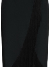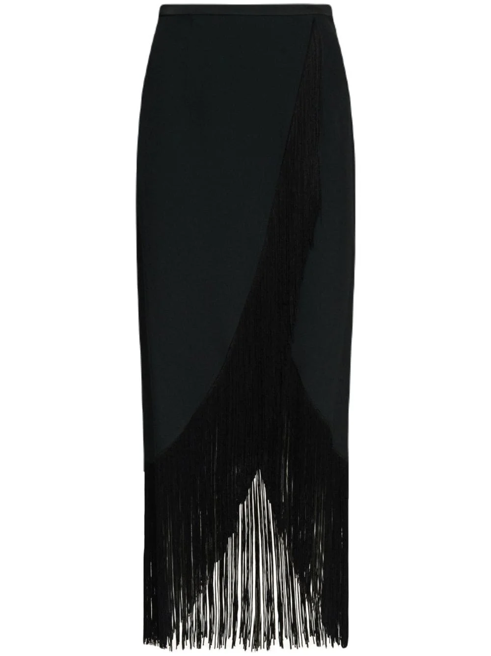 El Pareo midi skirt Highlights - Black - Crepe cady - Fringe detailing - Wrap design - High-waisted - Concealed side zip and button fastening - High-low hem - Mid-length Made in Italy Composition Acetate 78%, FSC Viscose 22%