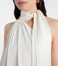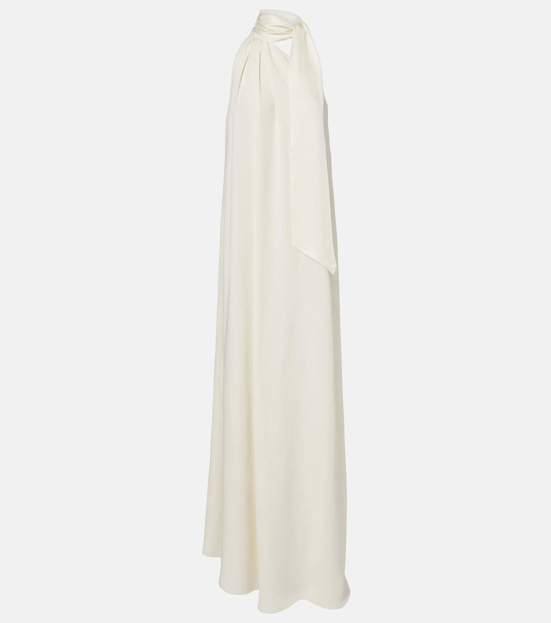Taller Marmo's glamorous designs are exclusively made in Italy by experienced artisans. Primed for special celebrations, the Astor gown is made from fluid crepe cady and comes in a minimalist silhouette accented by an elegant scarf detail. Product Details - Material: 78% acetate, 22% viscose - Care instructions: dry clean - Made in Italy - Designer color name: Latte - Item color: white - Self-tie neck - Item number: P01125872 Size & Fit - True to size - Semi-sheer - Designed for a loose fit - Non-stretchy fabric - The model seen in the picture is 178cm-5'10" and wearing a size IT 40