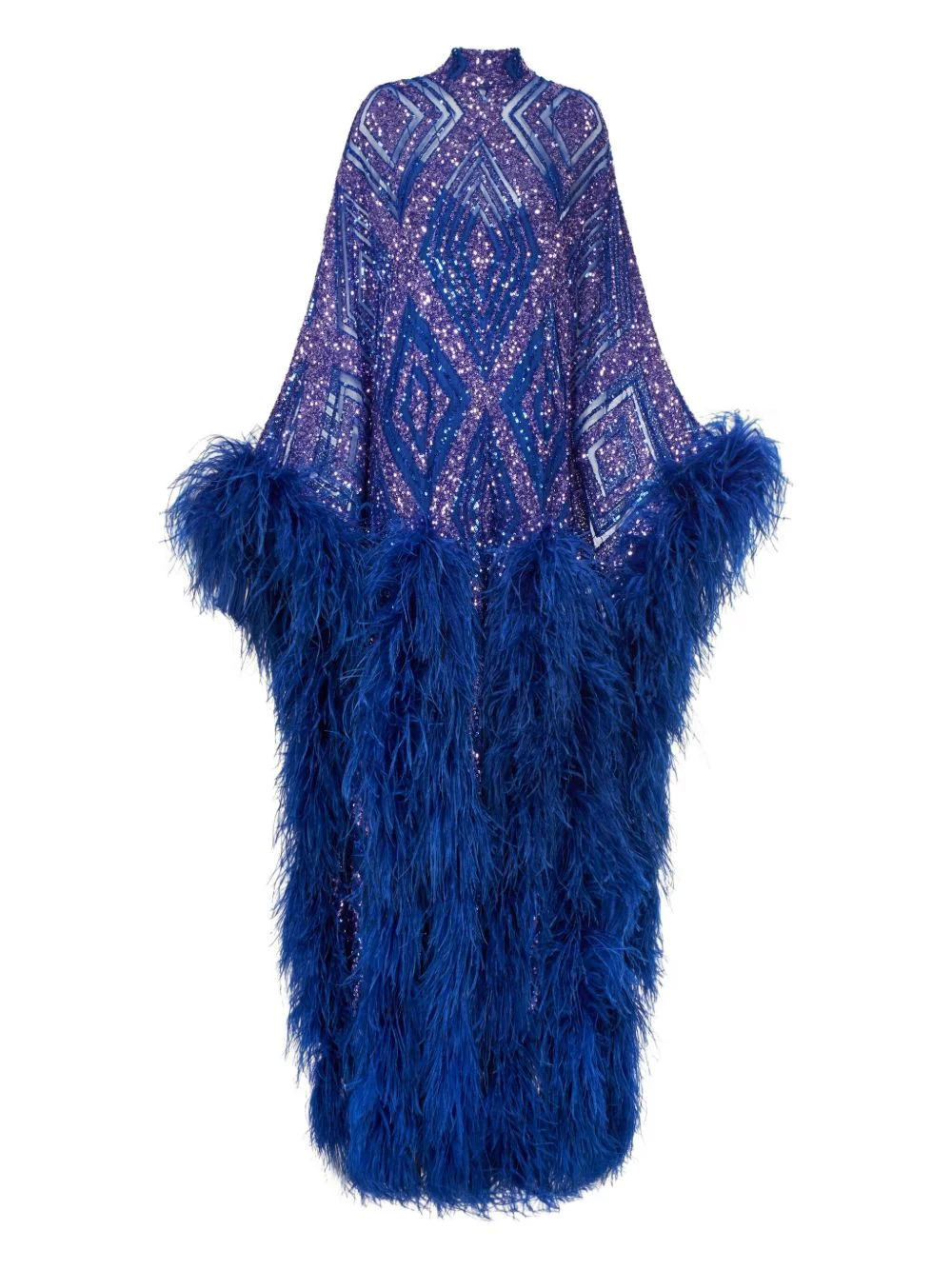 Casta Diva Follies sequin feather maxi dress Highlights - Royal blue - Sequin embellishment - Feather trim - High neck - Geometric pattern - Long sleeves Made in Italy Composition Outer: Polyester 100%, Ostrich Feather 100% Lining: Acetate 100%, Viscose 100% Washing instructions Dry Clean Only