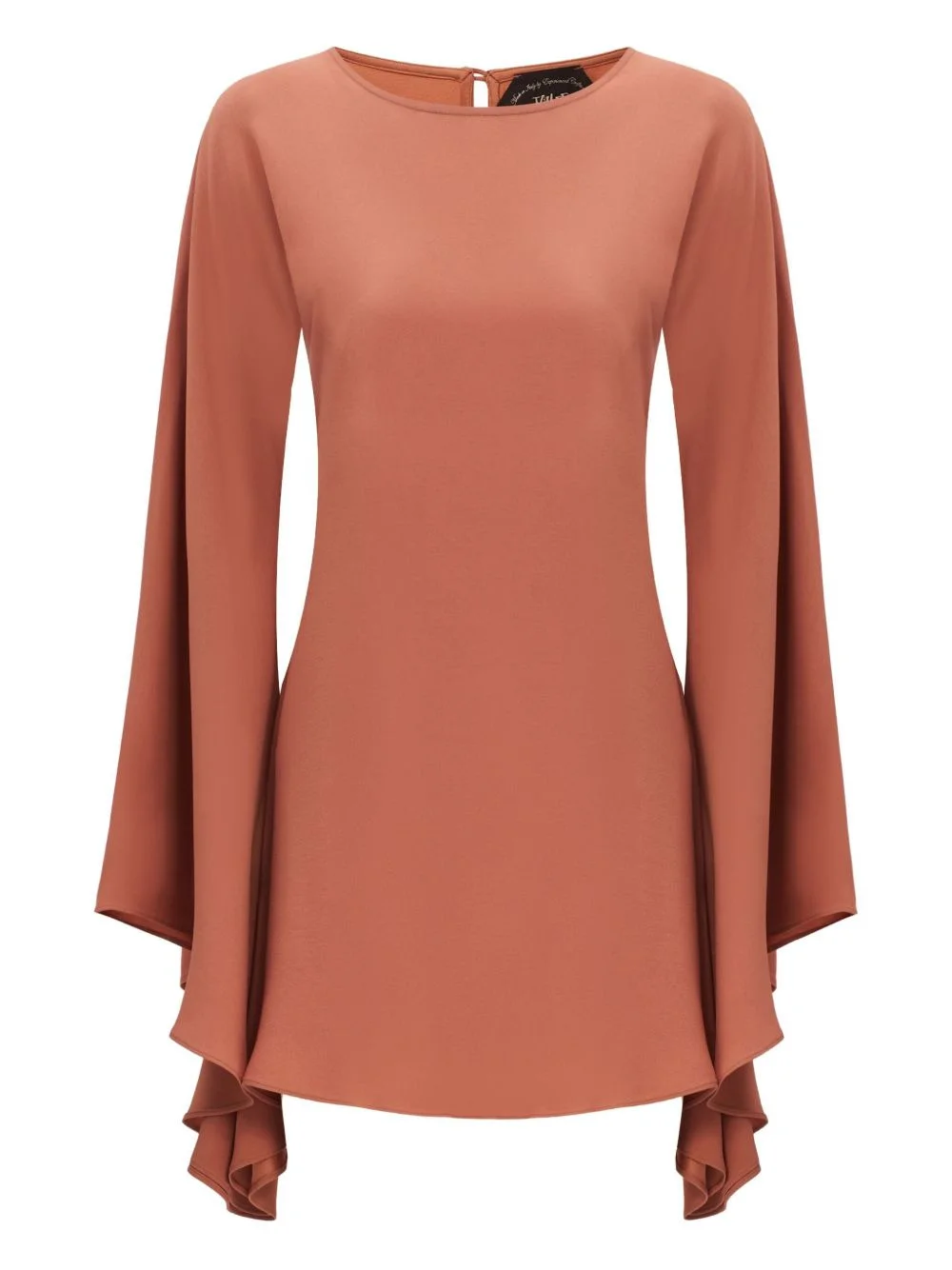 cut-out bell-sleeve mini dress Highlights - Terracotta - Bell sleeves - Cut-out detail - Round neck - Mini length - Acetate material Made in Italy Composition Acetate 78%, Viscose 22% Washing instructions Dry Clean Only