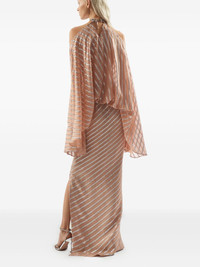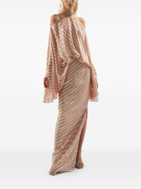 Cyclades maxi dress Highlights - Blush pink - Silver-tone stripes - Off-shoulder neckline - Wide sleeves - High neck - Side slit Made in Italy Composition Outer: Silk 80%, Polyester 20% Lining: Acetate 70%, Silk 30% Washing instructions Dry Clean Only