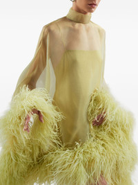 Daisy Kaftan feathered dress Highlights - Gold kiwi - Feather trim - High neck - Sleeveless - Back keyhole detail Made in Italy Composition Nylon 51%, Polyester 49% Washing instructions Dry Clean Only