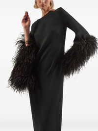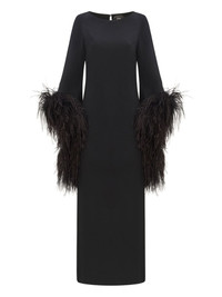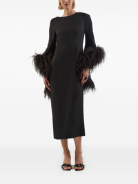 Del Lago feather-embellished midi dress Highlights - Black - Feather cuffs - Long sleeves - Boat neck Made in Italy Composition Ostrich Feather 100%, Acetate 78%, Viscose 22% Washing instructions Read Manufacturer Guidelines