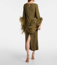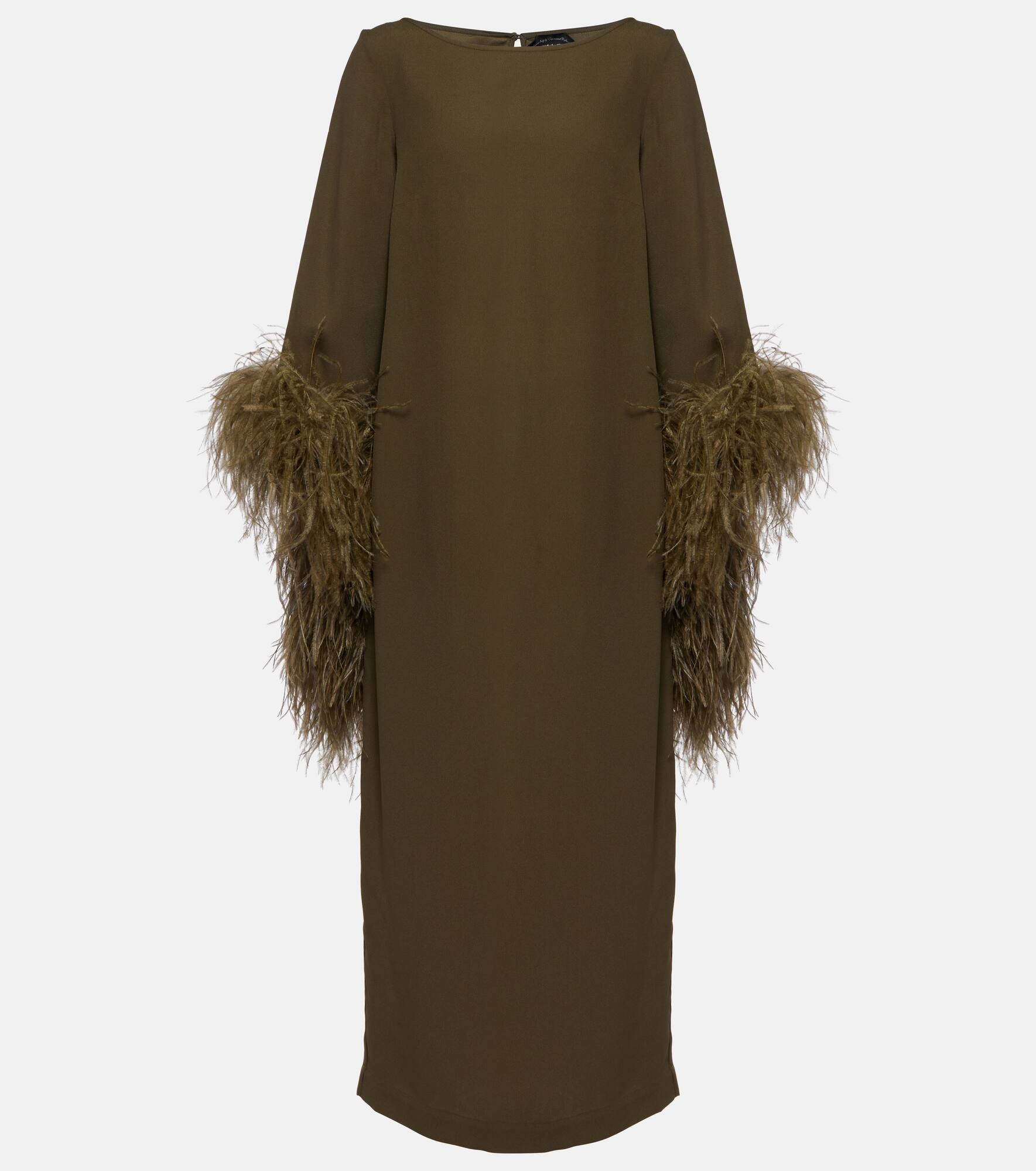 Product Details - Material: 78% acetate, 22% viscose - Care instructions: dry clean - Made in Italy - Designer color name: Forest Green - Trim: 100% ostrich feathers - Closure: zipped back, invisible zipper, button fastening - Item number: P00953185 Size & Fit - Fits large to size - we recommend trying one size smaller - Cinched waist - Non-stretchy fabric - The model seen in the picture is 178cm-5'10" and wearing a size IT 38