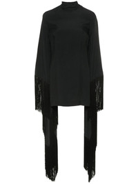 Del Mar fringed mini dress Highlights - Black - Crepe texture - High neck - Extra-long sleeves - Fringe detailing to the sleeves - Thigh-length - Unlined - Straight hem - Concealed rear zip fastening - Rear button fastening Made in Italy Composition Acetate 78%, Viscose 22% SIZE & FIT FittingInformation Designed for a slim fit that sits just away from the body offering a close yet comfortable fit The dart stitching adds structure and a closer fit in the torso of this piece Made from a midweight non-stretch fabric This piece fits true to size – take your usual size