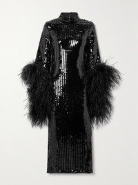 Del Rio Disco Feather-trimmed Sequined Tulle Midi Dress