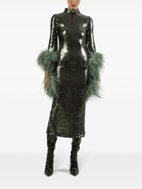 Del Rio Disco sequinned midi dress Highlights - Green - Sequin design - Ostrich feather - Feather-trim detailing - Mock neck - Concealed rear fastening - Rear slit - Long sleeves - Straight hem - Mid-length Made in Italy Composition Lining: Polyester 100% Outer: Polyester 100%, Ostrich Feather 100% SIZE & FIT Measurement CHEST 29.13 in(74 cm) SLEEVE LENGTH 28.74 in(73 cm) HIPS 28.34 in(72 cm) LENGTH 50.39 in(128 cm) WAIST 24.4 in(62 cm) Washing instructions Dry Clean Only