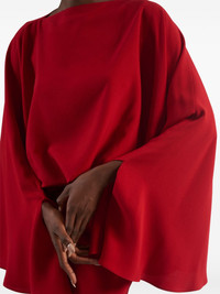Eolia maxi dress Highlights - Ruby red - Rear slit - Flared cuffs - Boat neck Made in Italy Composition Acetate 78%, Viscose 22% SIZE & FIT Measurement HIPS 35.43 in(90 cm) LENGTH 70.07 in(178 cm) WAIST 24.4 in(62 cm) Washing instructions Dry Clean Only