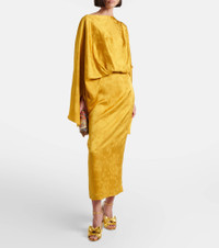 Taller Marmo's glamorous designs are exclusively made in Italy by experienced artisans. The Eolia Primavera midi dress is cut from jacquard into a long-sleeved silhouette with a draped bodice. Product Details - Material: 100% viscose - Care instructions: dry clean - Made in Italy - Color: yellow - Designer color name: Amber - Closure: concealed zipped side - Item number: P01125855 Size & Fit - True to size - Loose bodice, fitted skirt - Non-stretchy fabric - The model seen in the picture is 178cm-5'10" and wearing a size IT 40