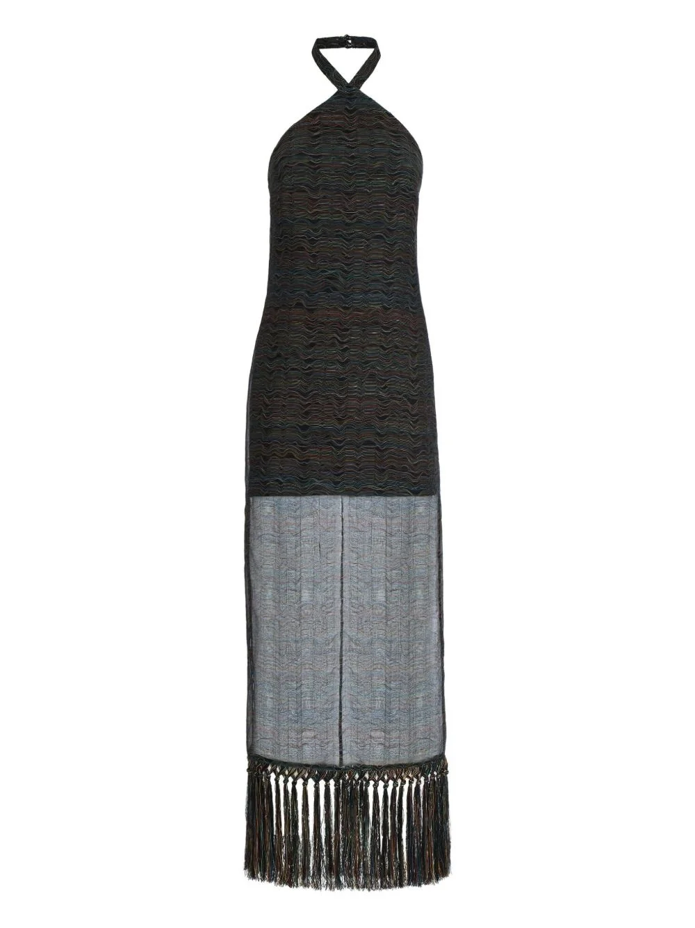 Estia dress Highlights - Black - Halte neck - Side slit - Fringe trim - Sleeveless Made in Italy Composition Outer: Linen/Flax 61%, Silk 30%, Nylon 9% Lining: Cotton 97%, Elastane 3%