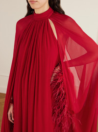 Eterea Cape-effect Feather-trimmed Chiffon Gown
