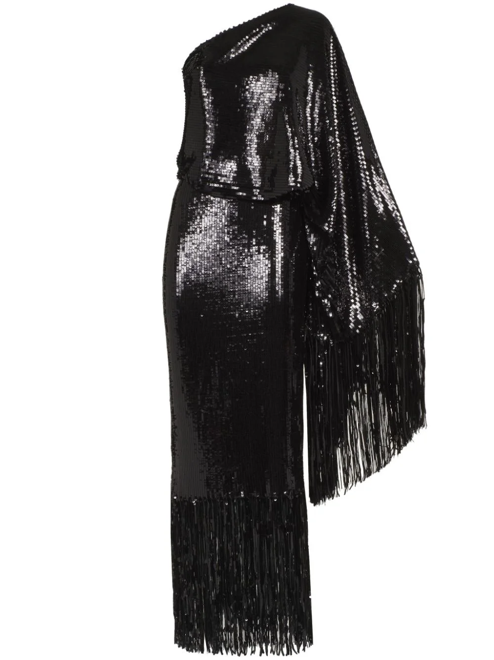 Eternity Disco maxi dress Highlights - Black - Sequin design - Concealed side zip fastening - Asymmetric neck - One-shoulder - Single long draped sleeve - Fringed edge - Draped detailing - Full lining - Straight hem - Long length Made in Italy Composition Polyester 100%, Sequin 100%