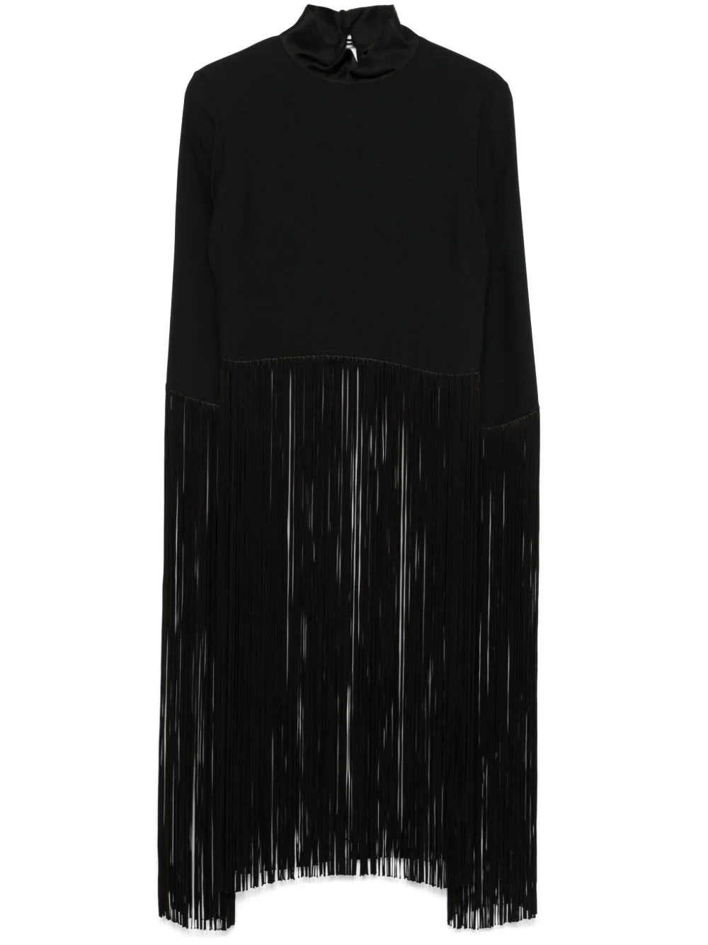 fringed blouse Highlights - Black - Concealed side zip fastening - Rear button fastening - Mock neck - Long sleeves Made in Italy Composition Acetate 78%, Viscose 22%