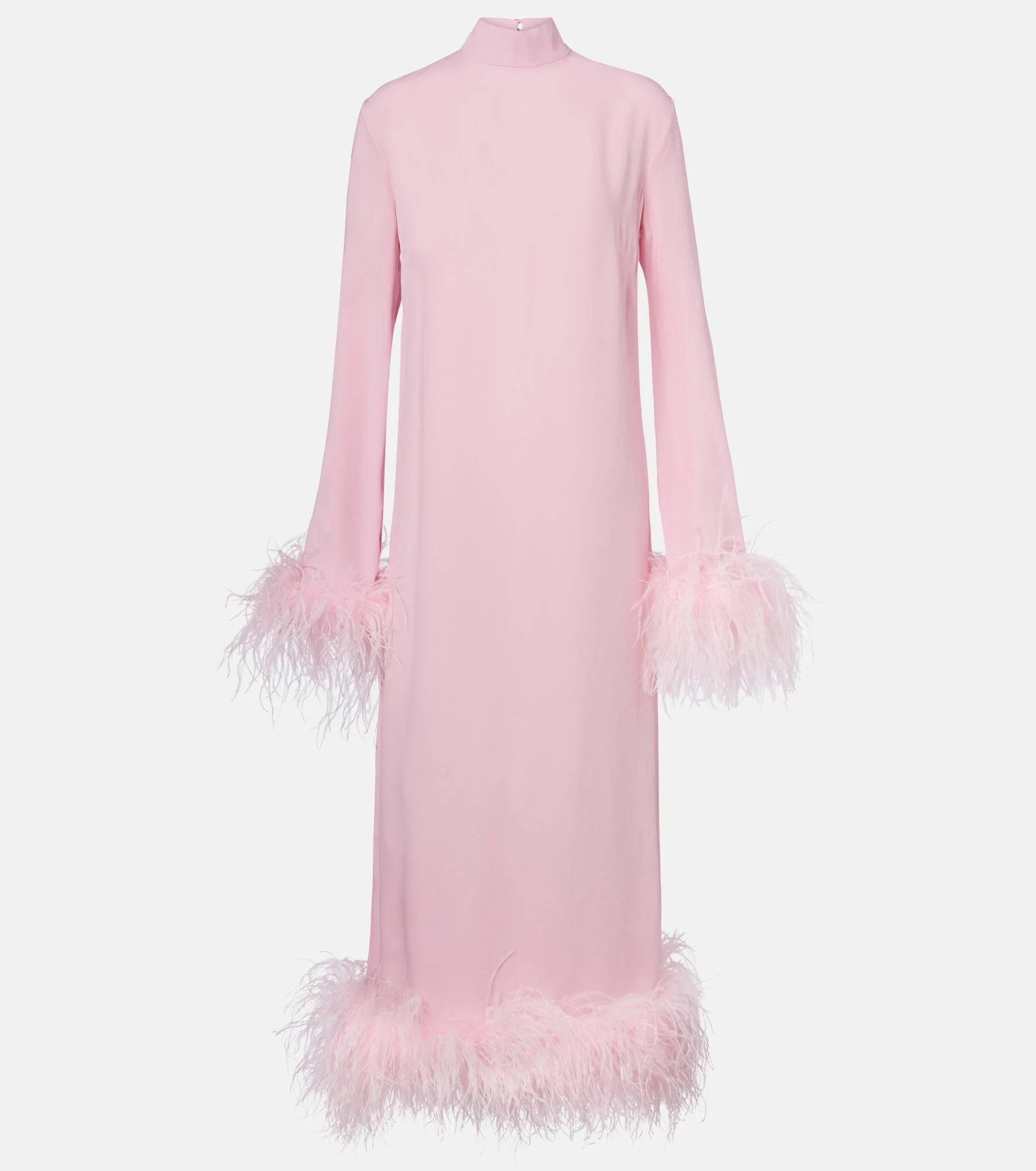 Make a lasting impression in Taller Marmo's glamorous styles, like the Gina midi dress. This design is made from crepe cady and adorned with plush ostrich feathers at the hem and cuffs. Product Details - Material: 78% acetate, 22% viscose - Care instructions: dry clean - Made in Italy - Designer color name: Baby Pink - Item color: pink - Trim: 100% ostrich feathers - Closure: buttoned back - Unlined - Item number: P01053354 Size & Fit - True to size - Straight fit - Non-stretchy fabric - The model seen in the picture is 178cm-5'10" and wearing a size IT 40