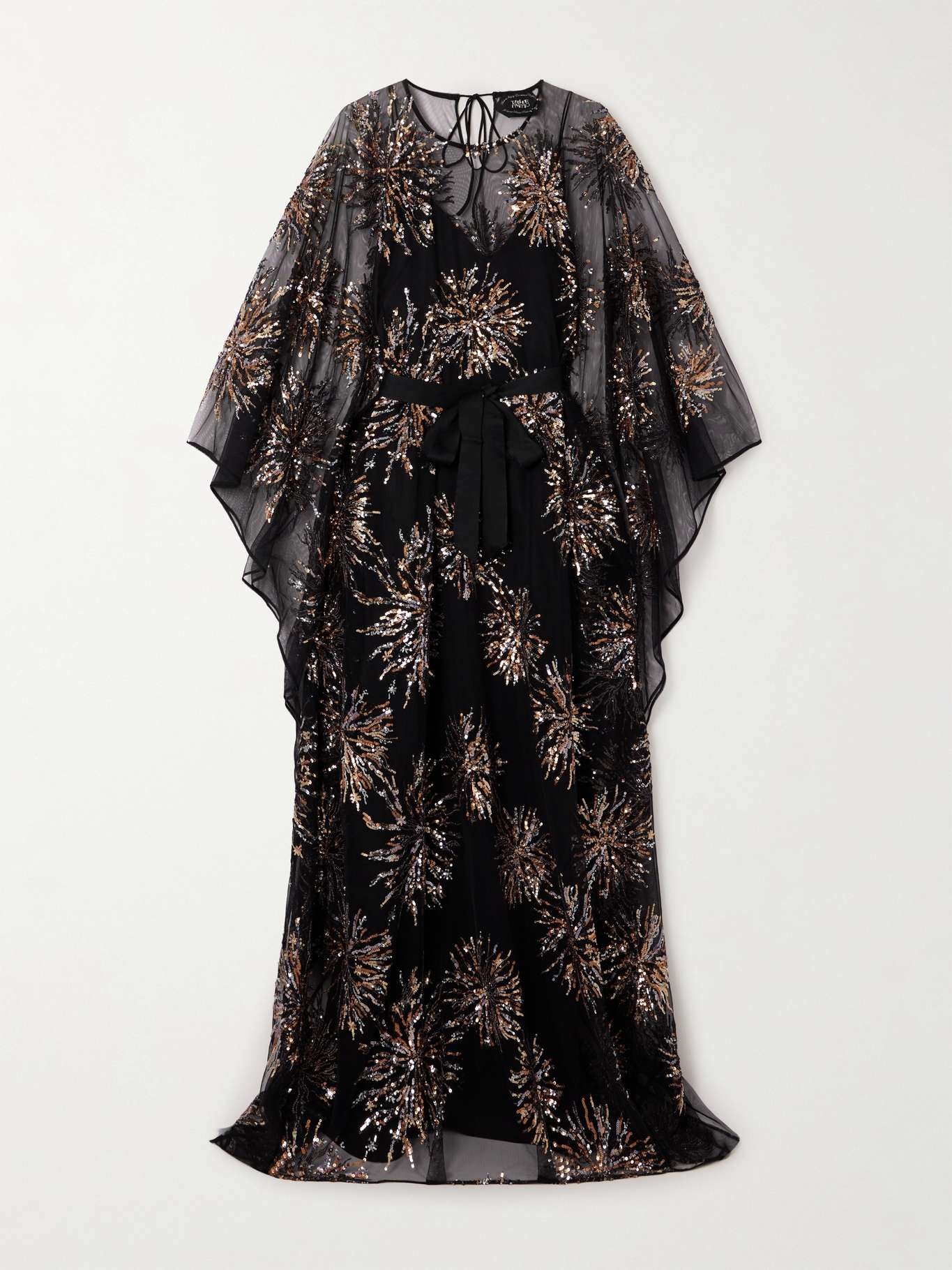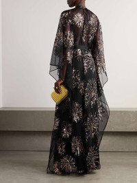 Gran Soleil belted sequin-embellished tulle kaftan
