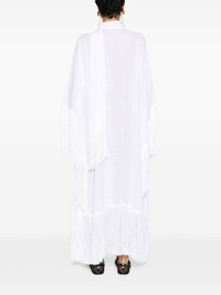 Iguazu kaftan dress Highlights - White - Linen/flax - Fringed edge - Scarf detailing - V-neck - Slip-on style - Long draped sleeves - Kaftan silhouette - Long length - Asymmetric hem Made in Italy Composition Linen/Flax 100%, Viscose 50%, Acetate 50% SIZE & FIT Measurement BUST 47.24 in(120 cm) LENGTH 53.14 in(135 cm) Shoulder Width 23.62 in(60 cm) SLEEVE LENGTH 21.65 in(55 cm) WAIST 47.24 in(120 cm) Washing instructions Dry Clean Only