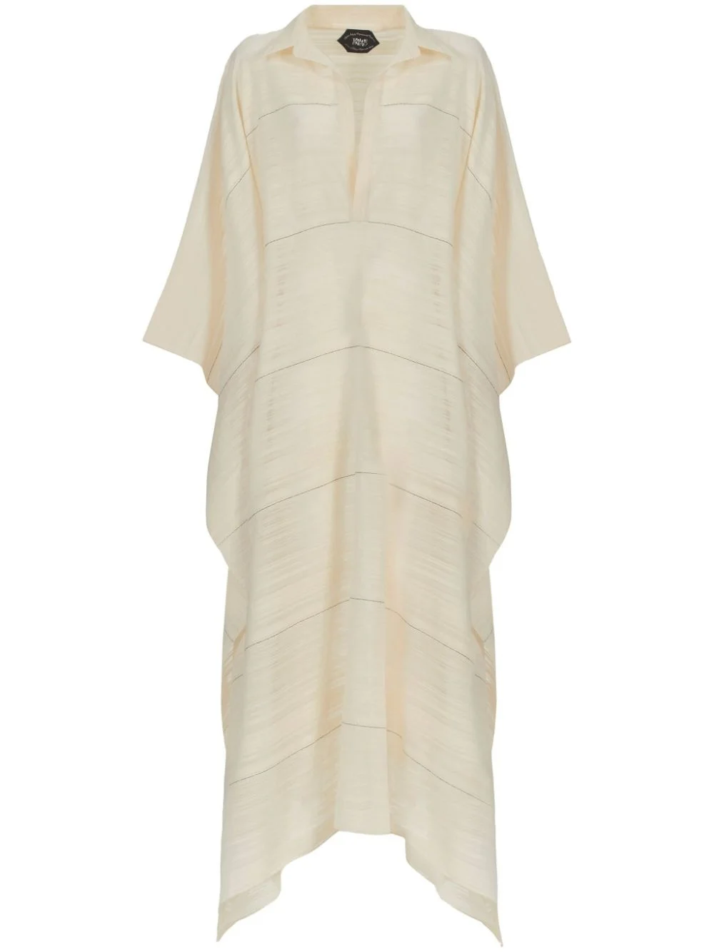 Lerici maxi dress Highlights - Light beige - Polo collar - Long sleeves - Horizontal stripe pattern Made in Italy Composition Cotton 79%, Nylon 14%, Polyester 5%, Other fibres 2%
