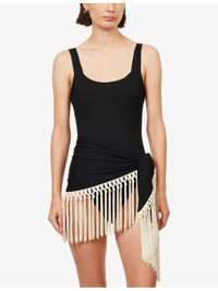 PRODUCT DETAILS - Taller Marmo swimsuit and cover-up set - 86% polyamide, 14% elastane; embellishments 100% acetate - Swimsuit: square neckline, shoulder straps, high leg, fully lined, mid-coverage at back - Cover-up: self-tie fastening, contrast fringed hem, double layer - Hand wash cold - Made in Italy - True to size - Lightweight, stretchy - For hygiene reasons, we are unable to exchange or refund this product if the protective adhesive strip has been removed. Ref: R04563501