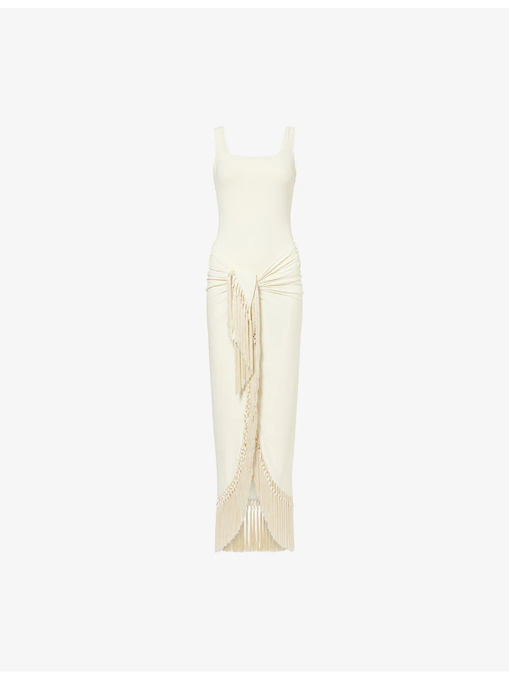PRODUCT DETAILS - Taller Marmo swimsuit - 86% polyamide, 14% elastane - Swimsuit: square neck, sleeveless - Beach cover up: hand-tied fringes - Machine wash at 30°C - Made in Italy - True to size - Model is 5ft 10in/1.78m and wears a size small - Lightweight, slight stretch - For hygiene reasons, we are unable to exchange or refund this product if the protective adhesive strip has been removed. Ref: R04563503