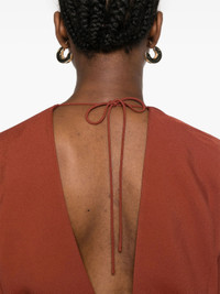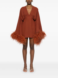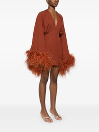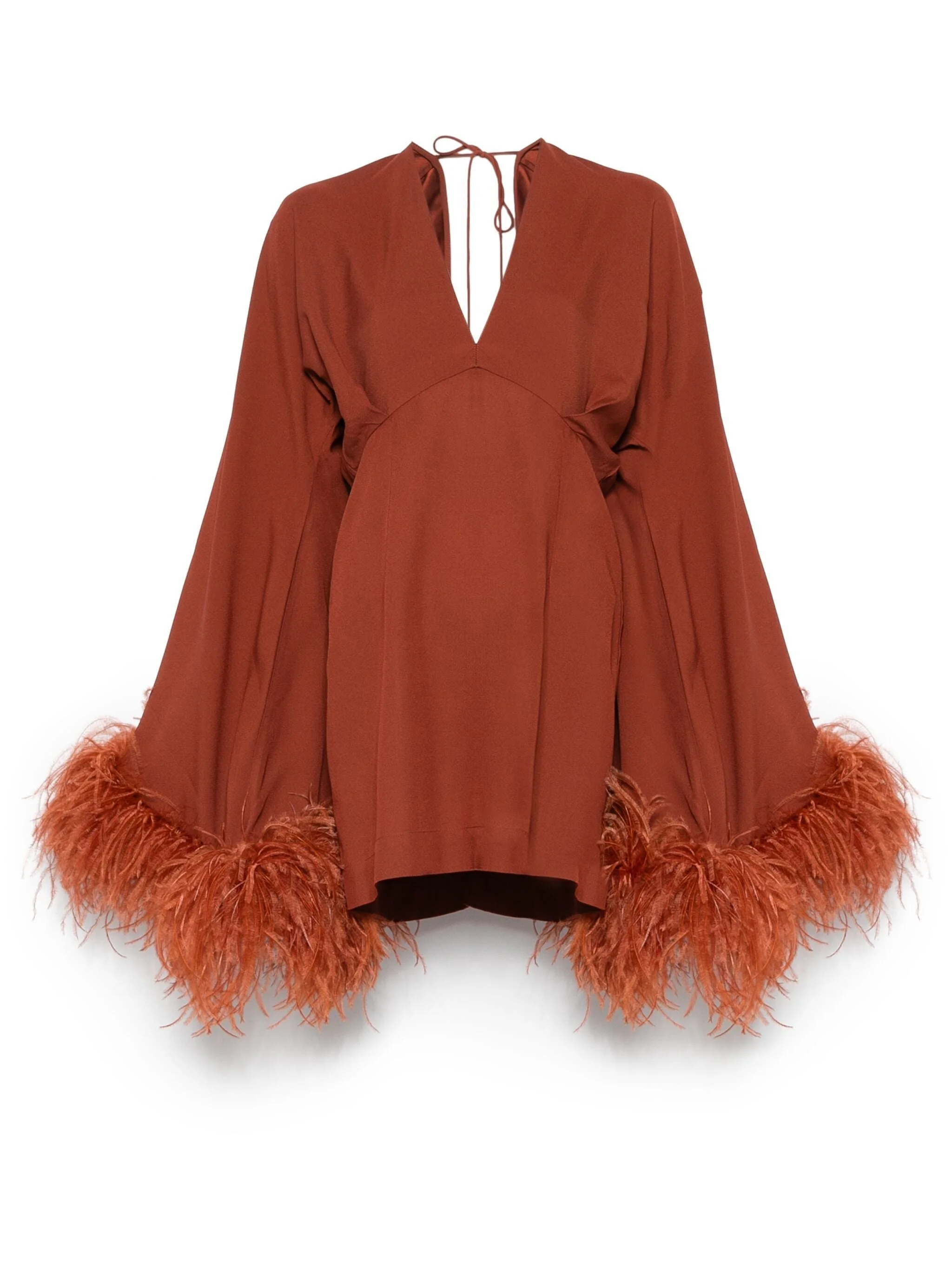 terracotta brown concealed rear zip fastening rear tie fastening bell sleeves contrasting cuffs - Color: BROWN - Made in: Italy - Designer Style ID: PS2520 707 Composition and care Acetate: 78.0%, Viscose: 22.0%, Ostrich Feather : 100.0%